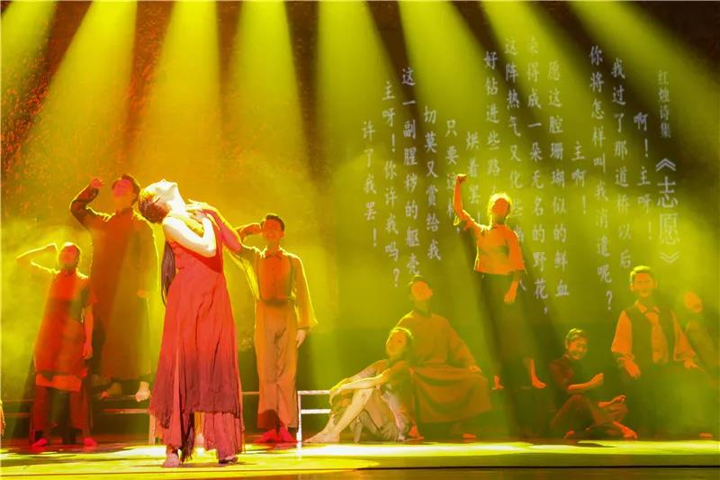 全剧分《死水》《红烛》上下两篇,《死水》中低沉颓废的情感状态和《红烛》中鲜活激昂的生命张力,两相对比碰撞传达出了鲜明的、冲击性的艺术感染力。我们是中华儿女,我们在死水中放声嚎啕,在红烛下热泪盈眶。