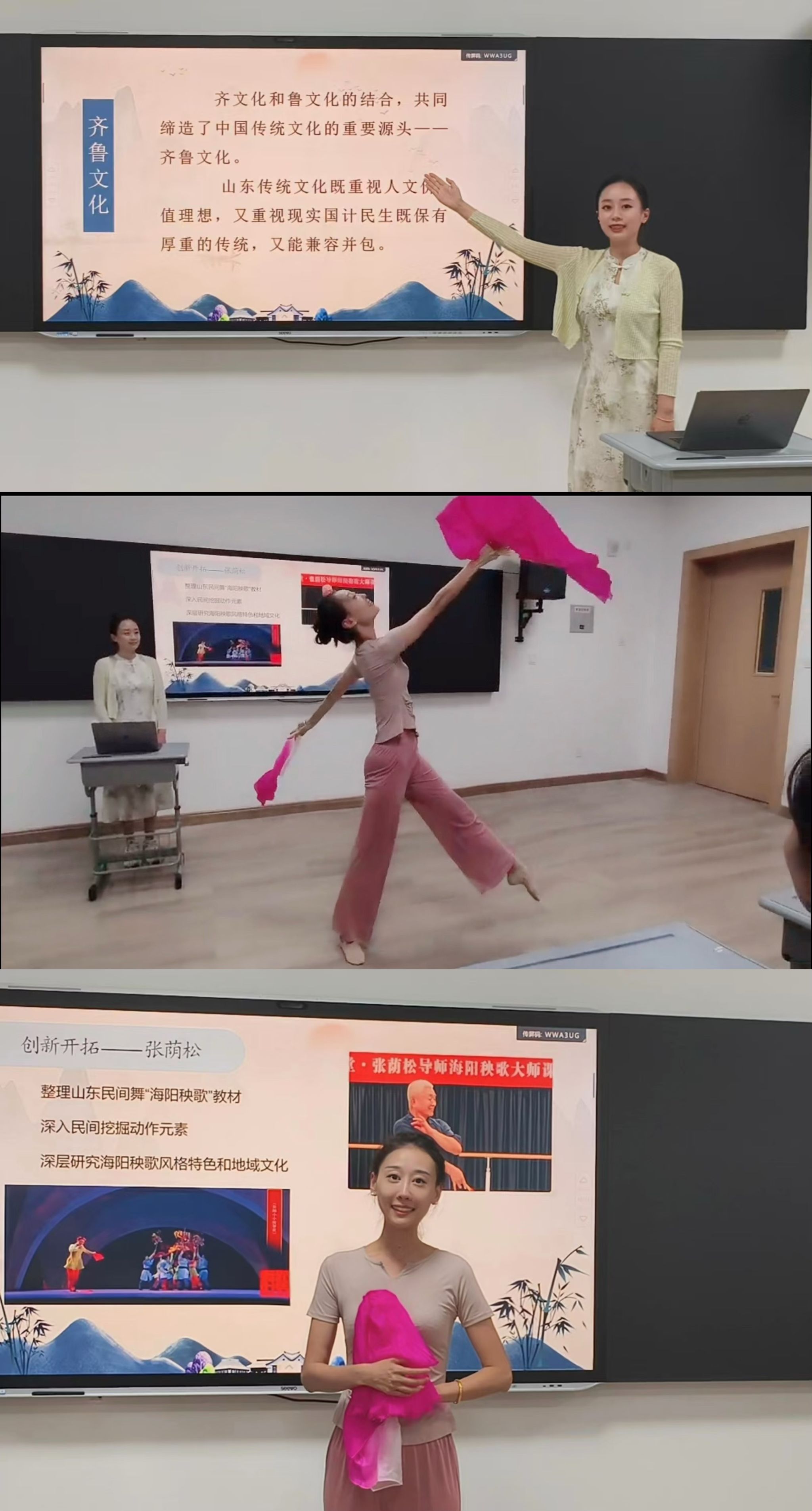 作品简介:参赛作品《齐鲁舞韵》汲取了山东老一辈舞蹈艺术家不懈探索的教育精神与科研精神,旨在传承山东舞蹈文化的精髓,深化齐风鲁韵的艺术内涵,并实践了习近平总书记关于科学家精神与教育家精神的重要论述。该项目的突破性进展体现在课堂教学模式的革新上,实现了舞蹈理论教学与实践操作的深度整合,紧密围绕“创新引领创业、创业带动就业”的双创核心主题。项目坚持通过以赛促教、以赛促学、以赛促创,成功地将舞蹈艺术与素质教育相融合,为舞蹈专业的学子们开辟了一条创新创业的新路径,同时也促进了素质教育舞蹈体系的进一步完善。
