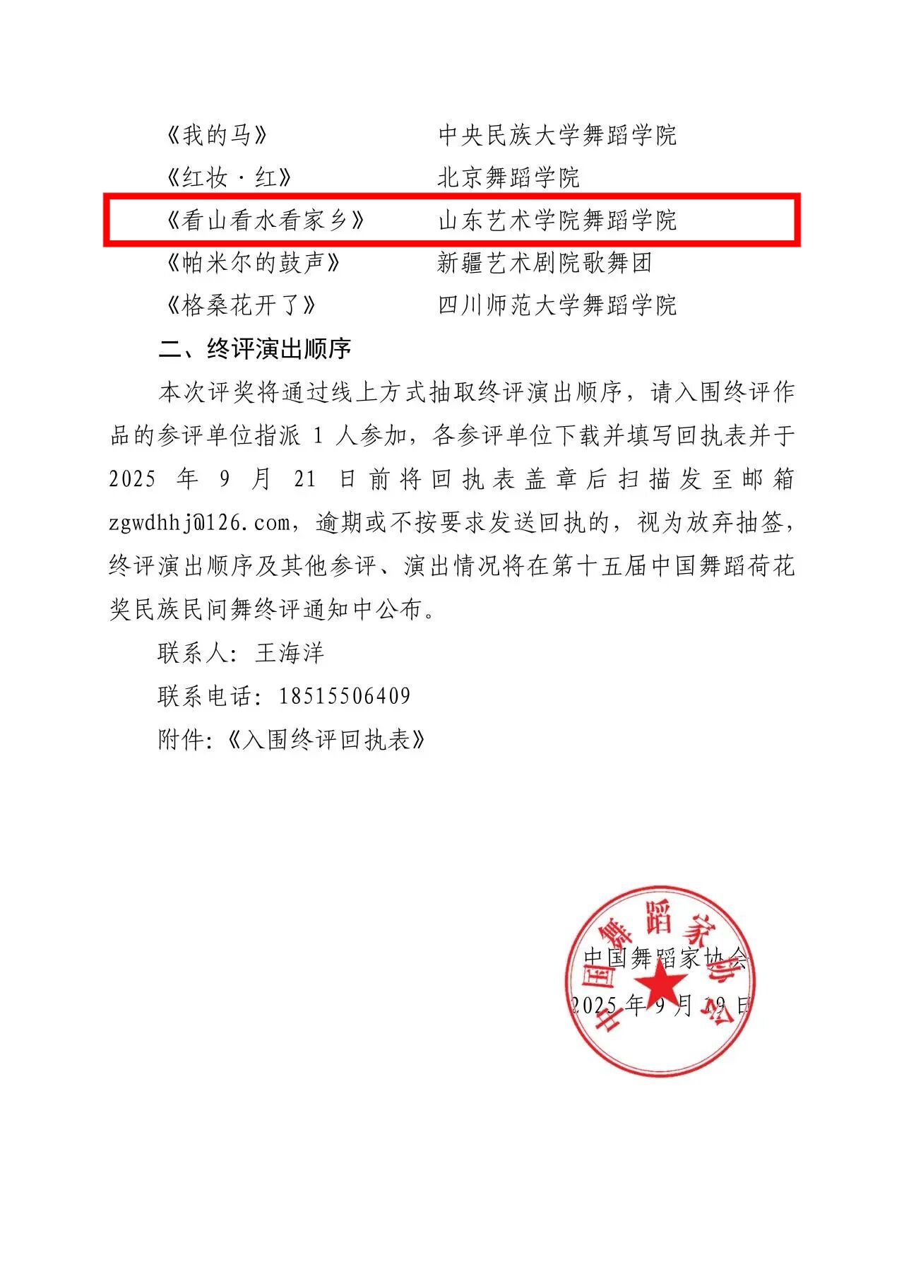喜报!山艺beat365亚洲体育官方网站两部原创作品入围第十五届中国舞蹈“荷花奖”民族民间舞终评