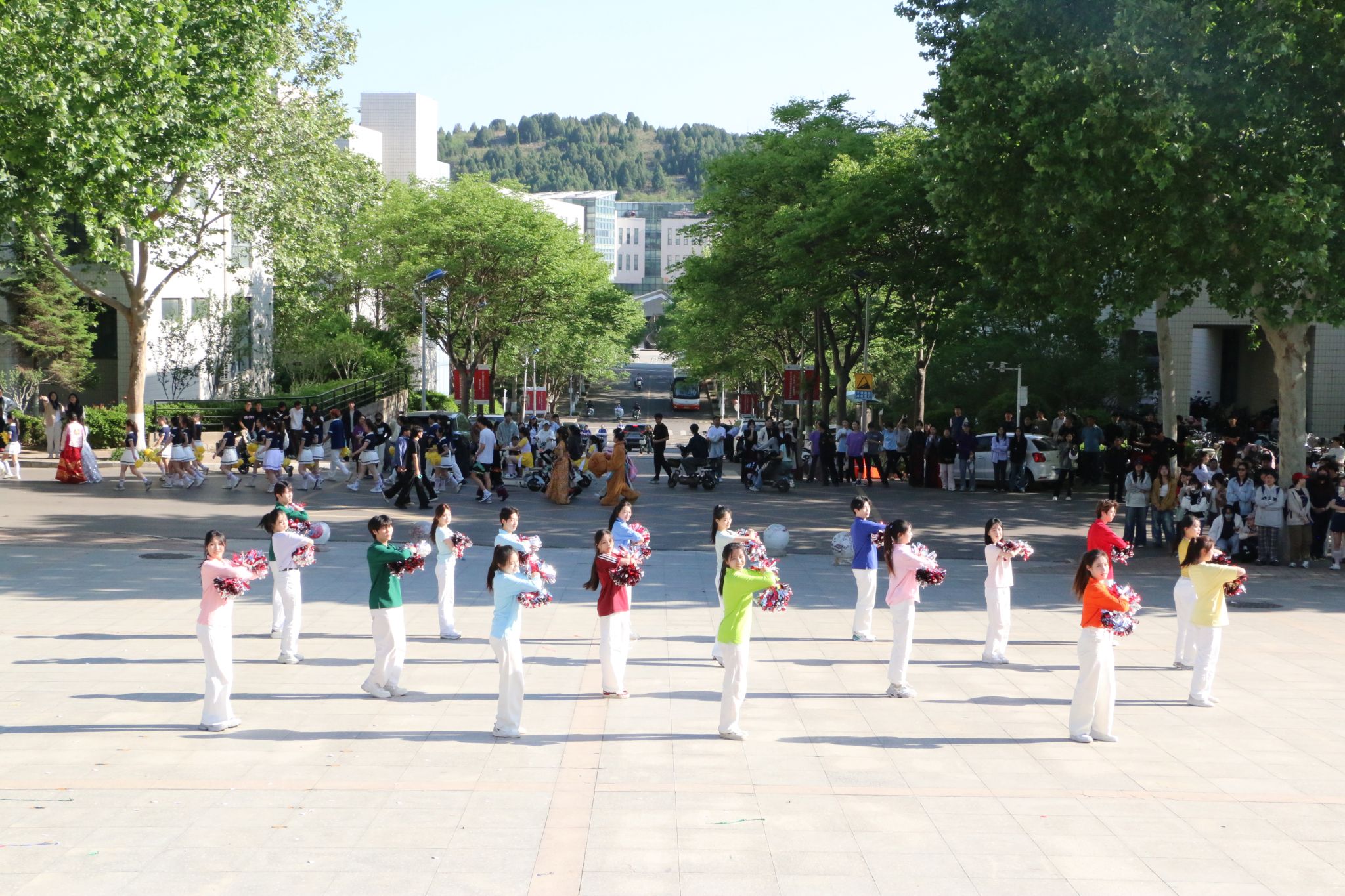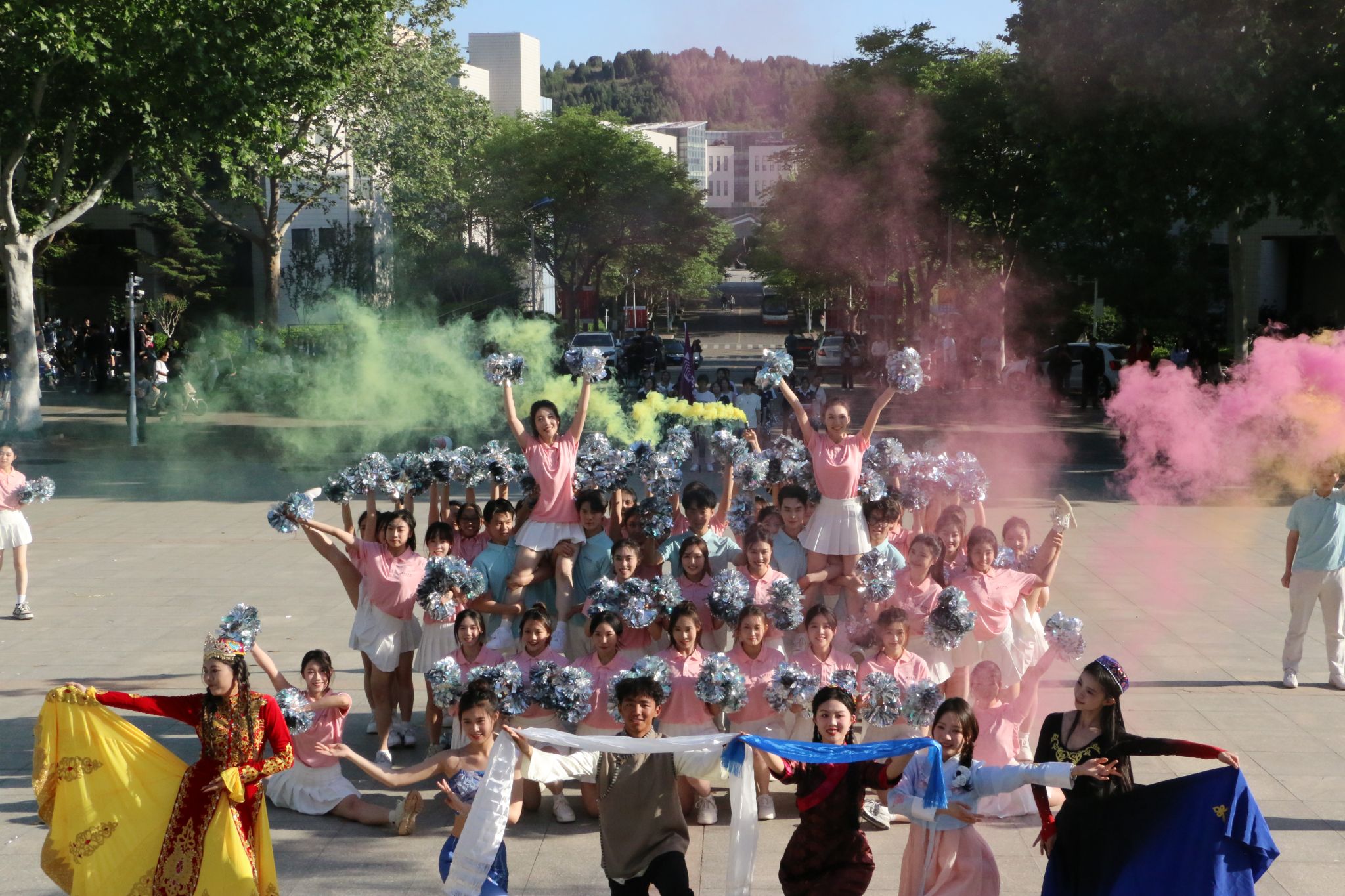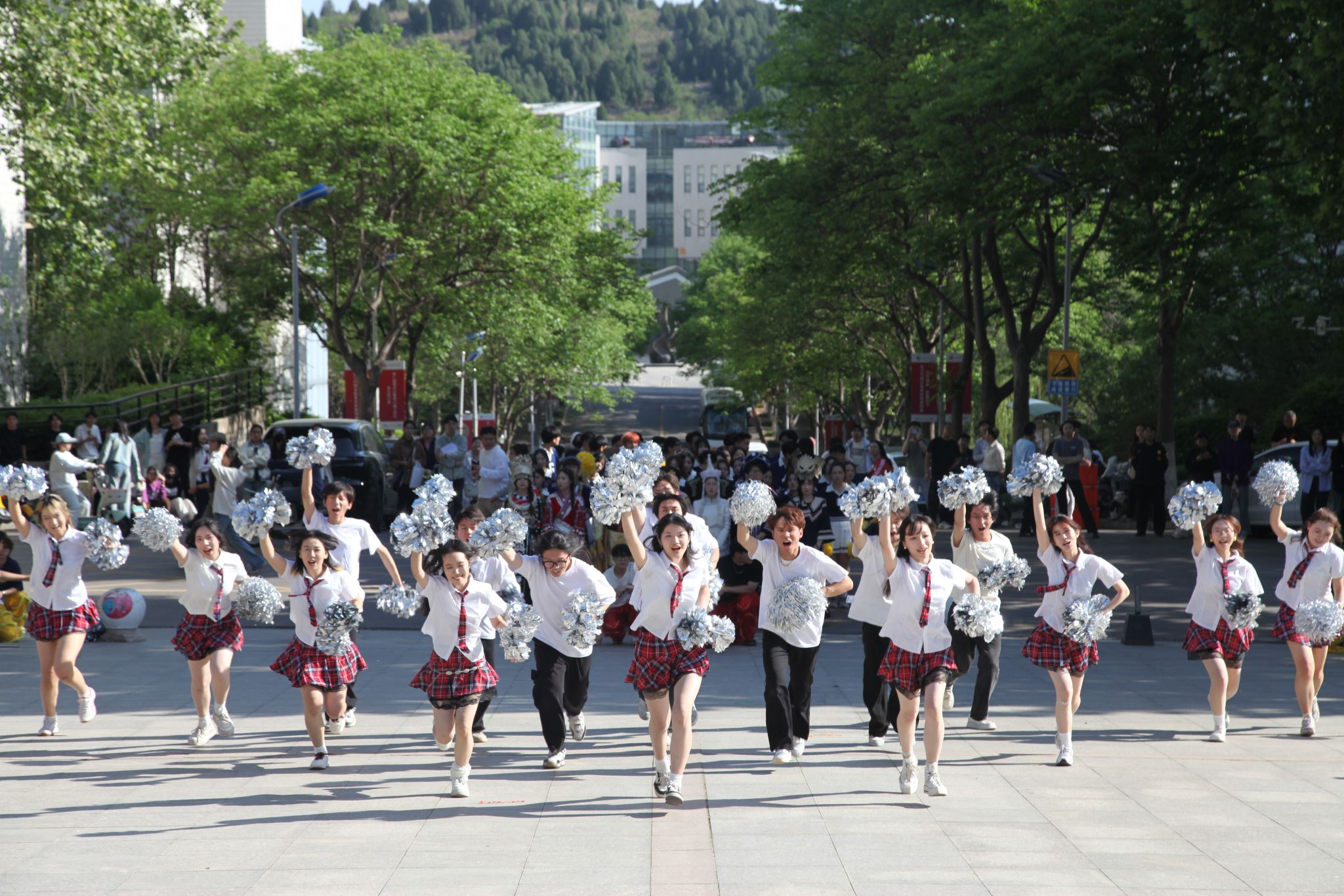 微风拂面,灼灼芳华,旋律响起,点亮激情。在这里我们共同见证青春的激情与梦想,感受热情与魅力。跳跃如同高高展翅的鸟儿,轻盈又充满朝气;转身好似旋转的花朵,绽放着绚烂的光彩。在比赛中,各公司都加入了自己的风格特色,将各民族的服饰和舞蹈加入其中,展现了民族团结共同进步;在结束时放出不同颜色的彩烟,象征了同学们五颜六色自由自在的青春;让中国风元素融入到舞蹈当中,展现浓厚的爱国情怀;挥舞摆动墨宝亦或长袖,展示出风格迥异的专业特色。让我们一起来感受一下充满热情与活力的啦啦操表演!
