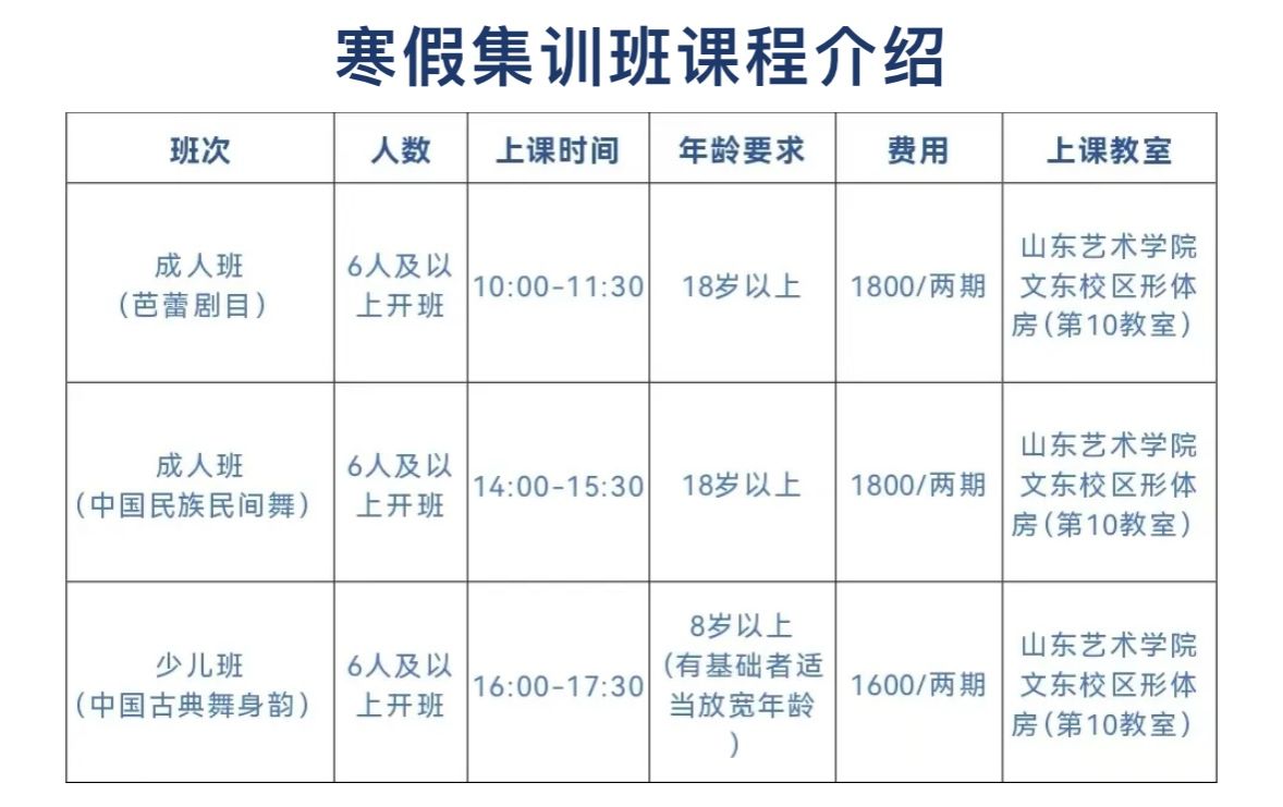 参加寒假集训班第一期的学员们走入课堂,开始了舞蹈学习之旅。目前,第一期课程正在进行中,课程涵盖芭蕾经典剧目、中国民族民间舞、中国古典舞身韵课程,来自社会各界的舞蹈爱好者们在这里找到了属于自己的舞台。
