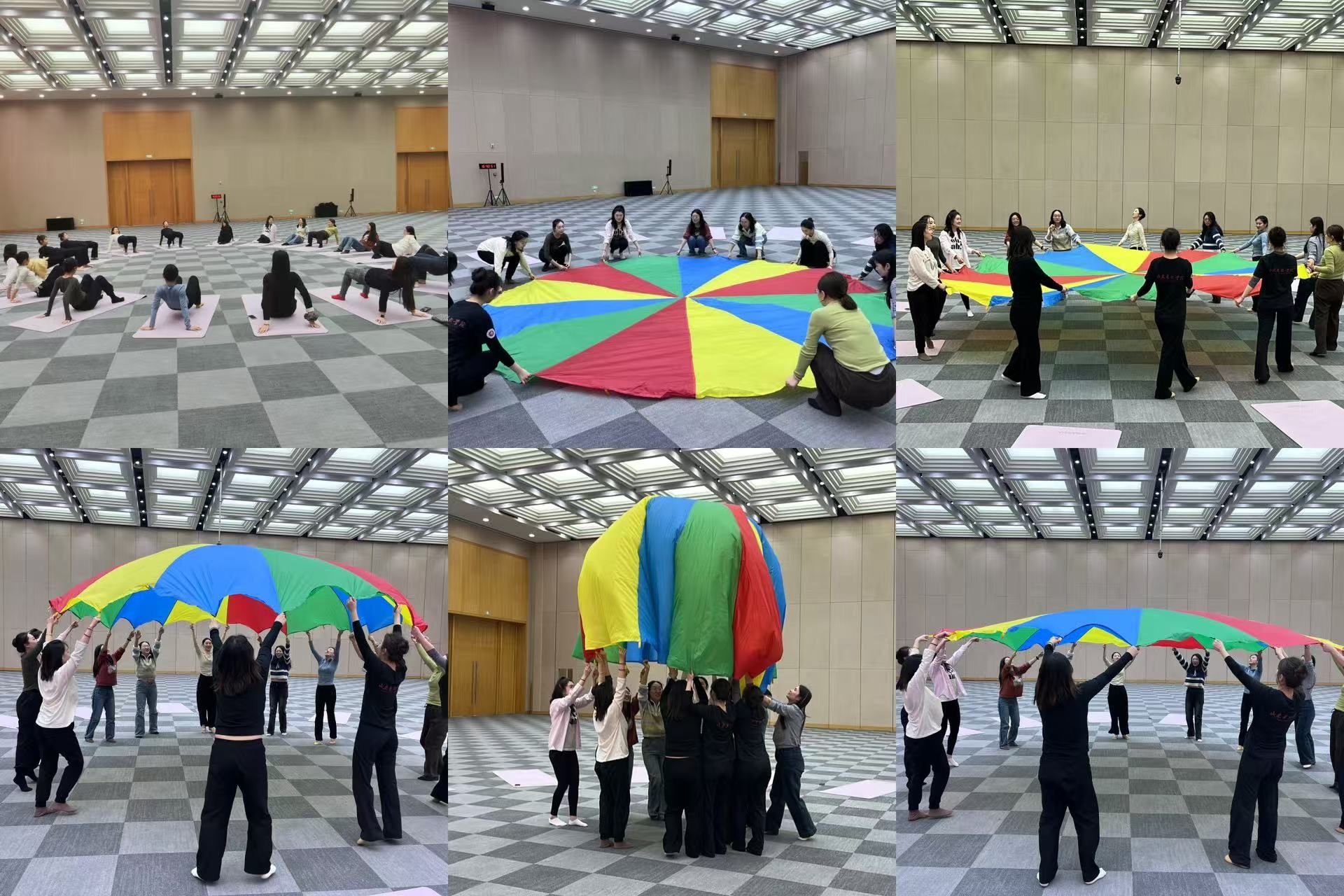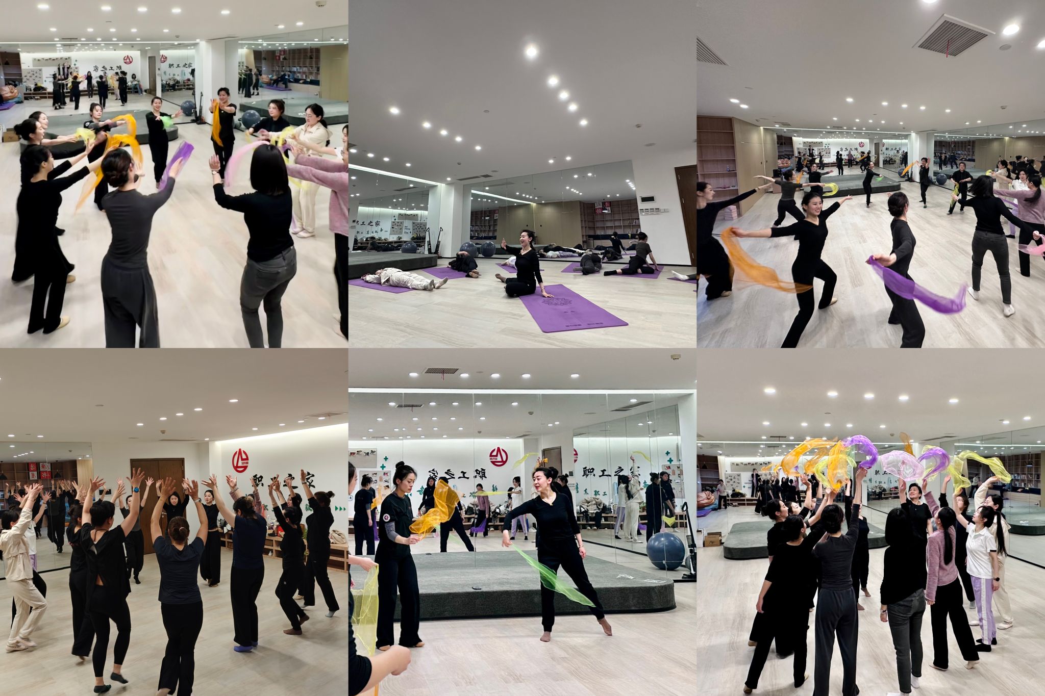 “舞动愈心”团队由李丽娜教授领衔,以艺术赋能现代职场为使命,针对企业员工久坐体僵、脑力过载、焦虑积压、社交疏离等问题,融合舞蹈治疗核心理念与技法,精心研制“真实动作 - 以形入心”职场赋能方案。该方案通过雀丝圈热身破冰、呼吸韵律重塑、镜像感知训练、空间即兴表达、道具连接团体等模块,开创舞蹈艺术介入职场健康管理新范式。
