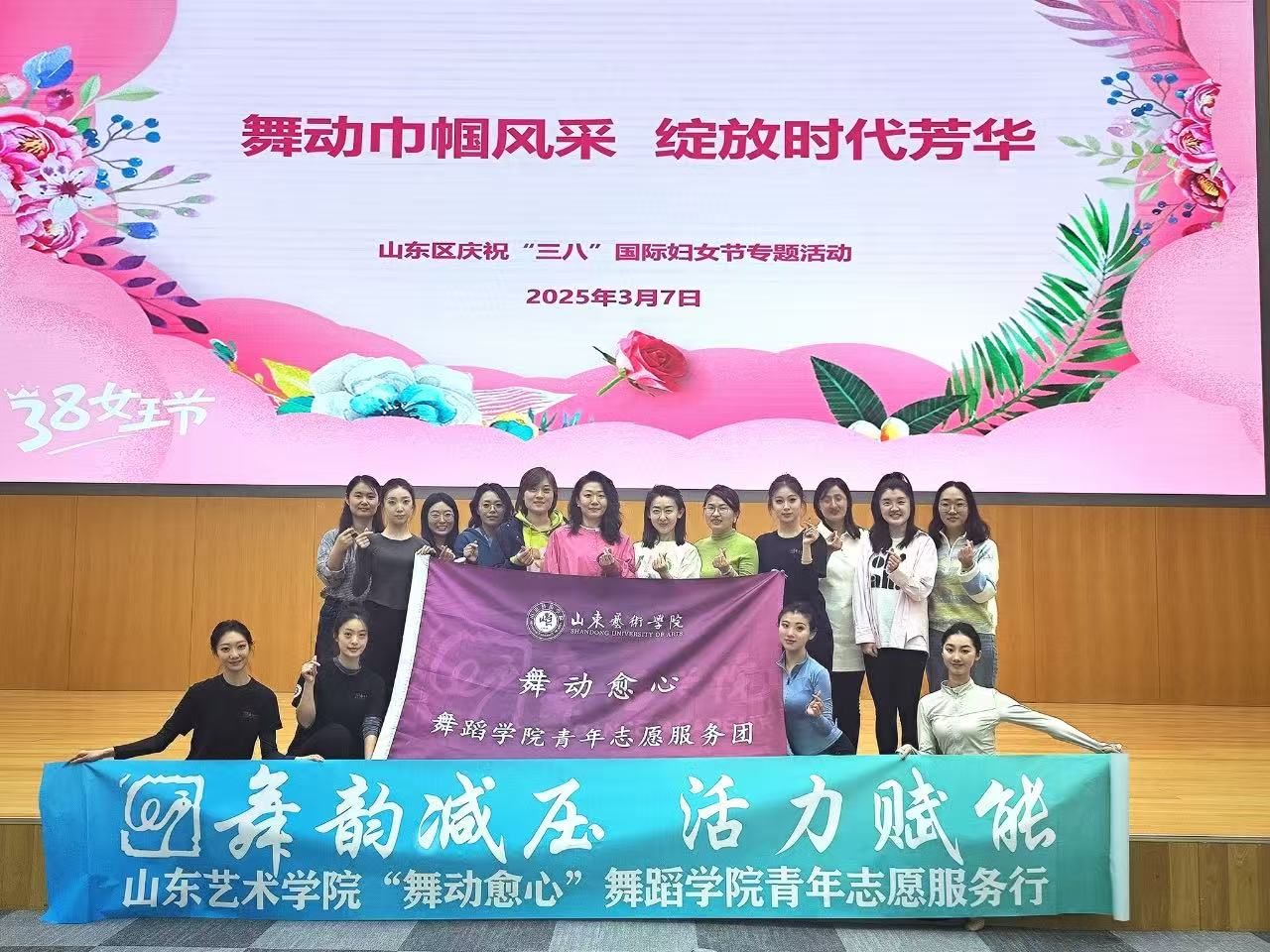 2025年3月6日至7日,beat365亚洲体育官方网站“舞动愈心”青年志愿服务团,走进浪潮集团与山东省土地发展集团,为数十名员工开展“舞动减压”专项疗愈课程,首开艺术疗愈服务职场健康新模式。公司党总支书记张琦,教授李丽娜,团总支书记、学工办主任鲁芳及“舞动愈心”青年志愿服务团的志愿者们参加。