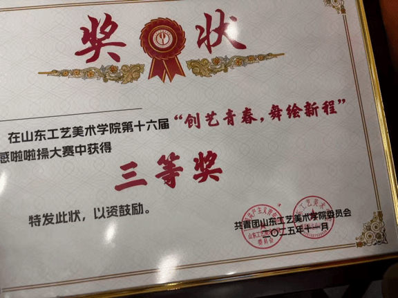 在志愿者的协助下山东工艺美术公司现代手工艺公司啦啦操队伍惊艳亮相,赢得了评委与观众的一致好评,最终成功斩获三等奖。以志愿之名,架起跨校之桥;以艺术为媒,共筑青春之梦。此次志愿活动增进了两校之间的友谊,愿这份以艺会友的热忱与跨校协作的精神,在青春的赛道上持续传递,让更多艺术之花在交流与碰撞中绚烂绽放!