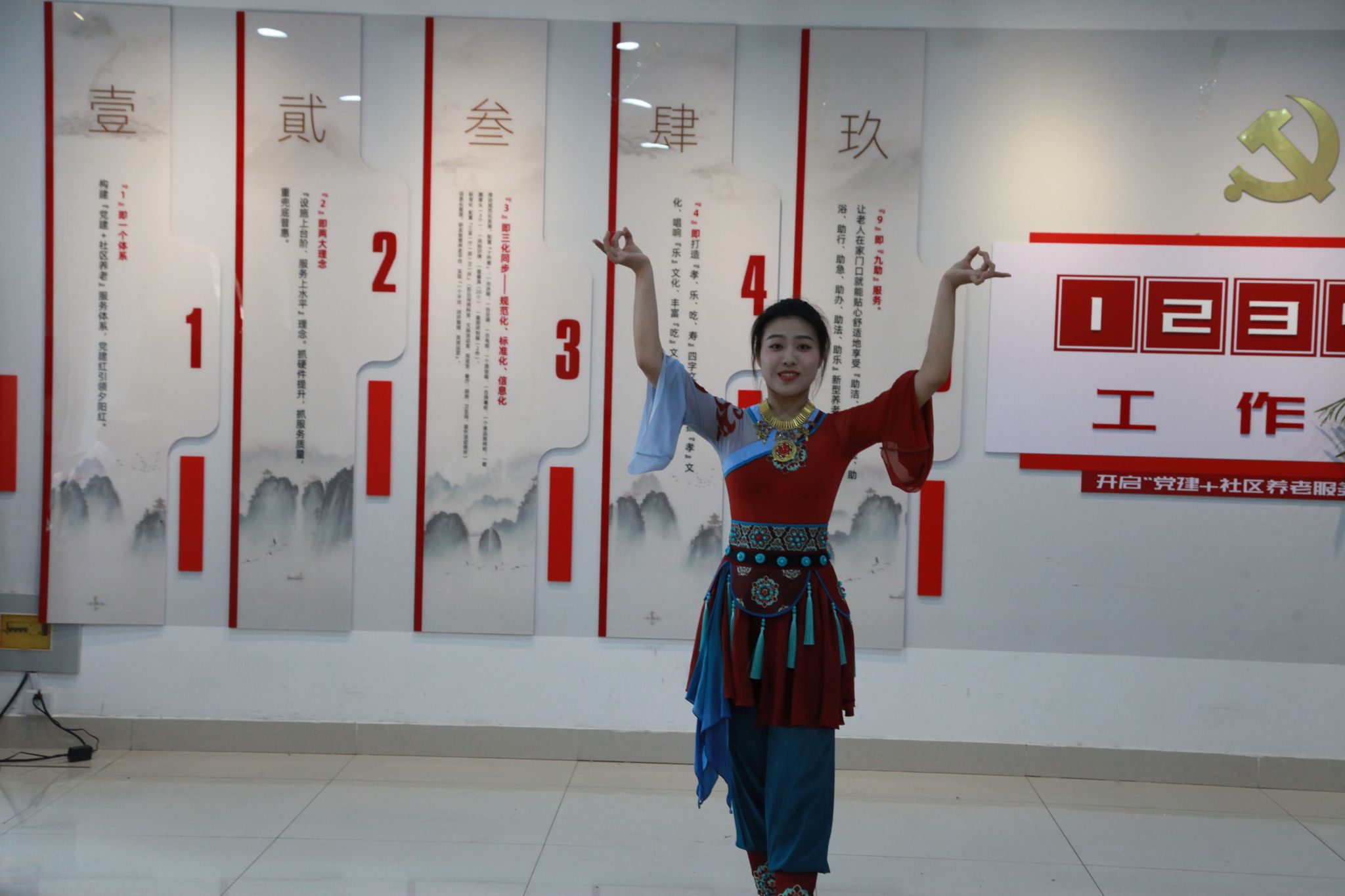 活动在欢快的舞蹈中拉开帷幕,服务团为老人们带来了《独舞串烧》、《东北秧歌》和《剧目串烧》三个节目。她们用灵动的舞姿点燃了现场观众的热情,让大家感受到了浓厚的节日氛围,现场气氛热烈,欢笑声此起披伏。老人们的脸上洋溢着幸福的笑容,纷纷为服务团的精彩表演鼓掌喝彩。