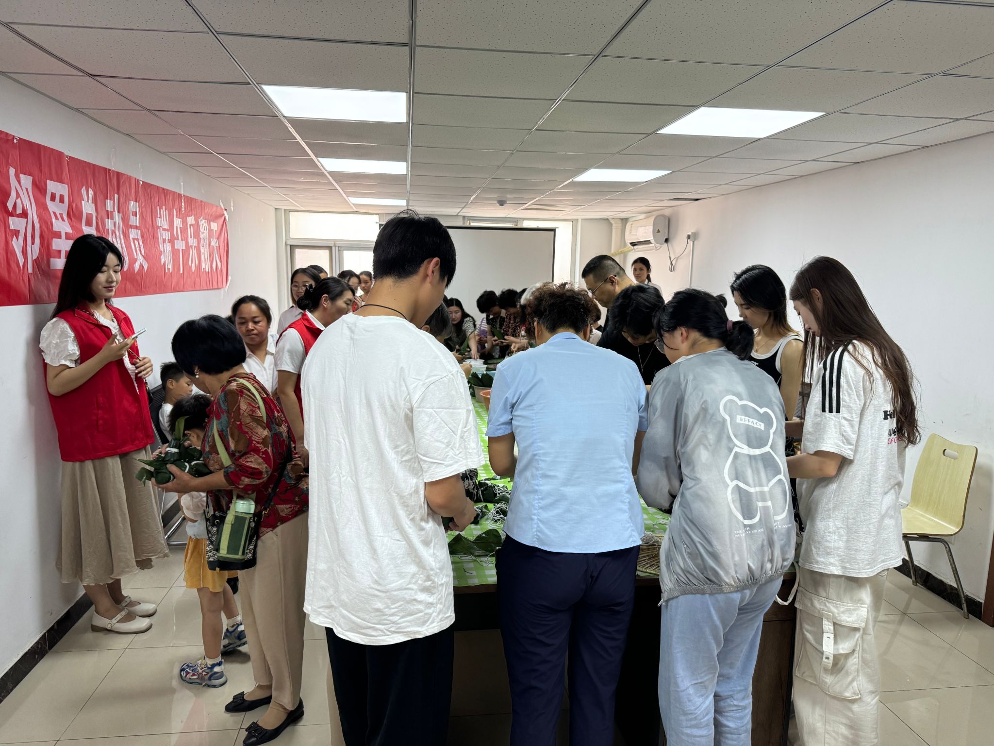活动现场艾草四溢,粽香弥漫。志愿者和居民们一起围拢在桌子旁,有经验的“老手”向从没包过粽子的“小白”们传授技巧,现场洋溢着浓浓的节日氛围。不一会儿,一个个形态各异的粽子便呈现在大家面前。