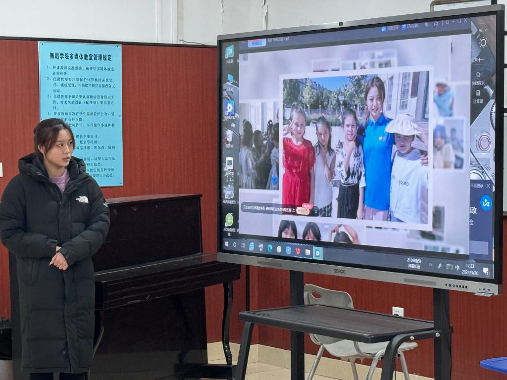 团课邀请西部计划志愿者2022级舞蹈学班霍佳慧为同学们讲述她“真听真看真感受”的志愿服务生活。霍佳慧向同学介绍了她在新疆14天的志愿服务情况,分享了生活中的点点滴滴,她表示身处祖国的最西部,有幸用双眼欣赏祖国西部的大好美景,能够更深刻感受到西部地区在共产党的领导下,在西部志愿者的奋斗下的发展变化,她所见的不再是地理书上描述单调的新疆,而是一个雄伟壮阔,热情似火的新疆。