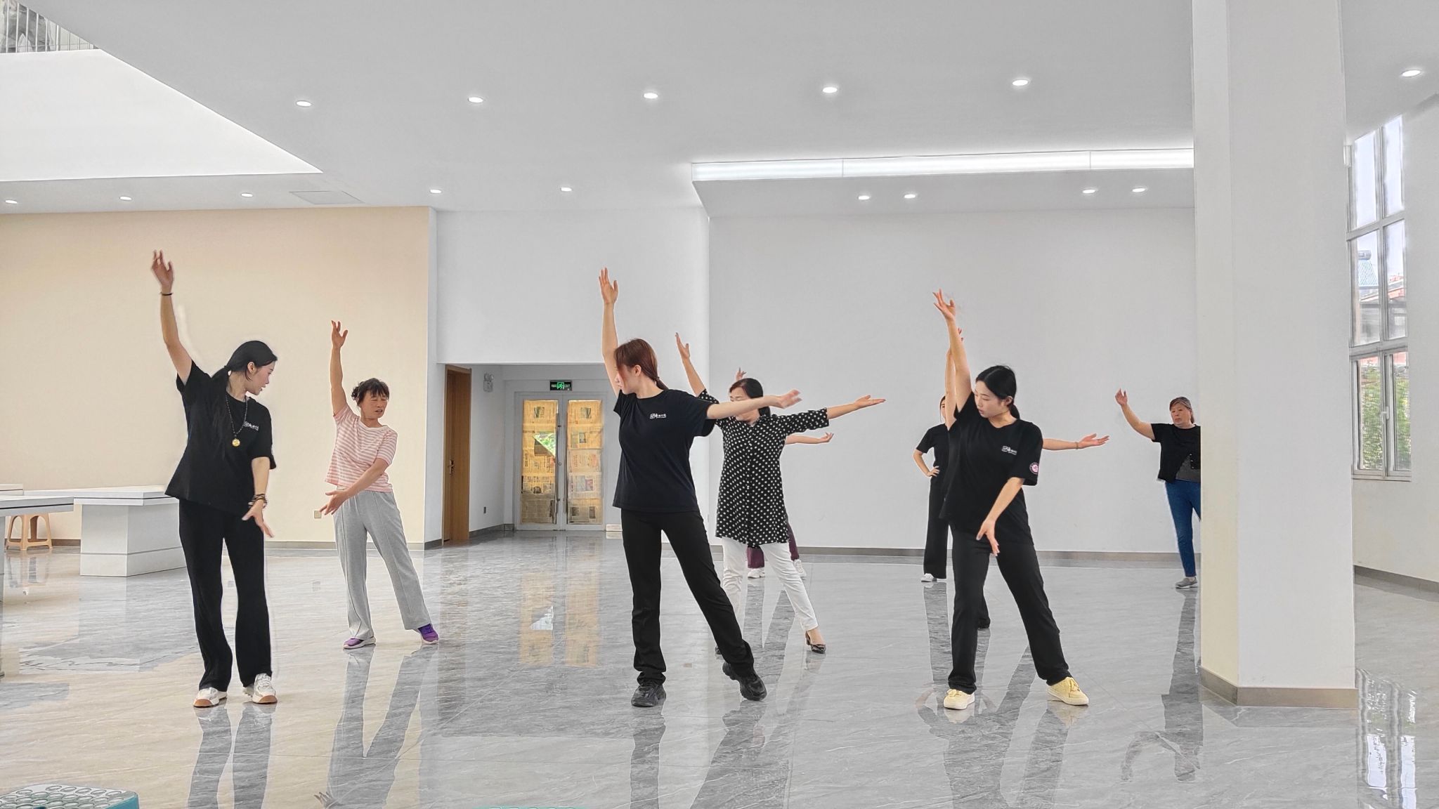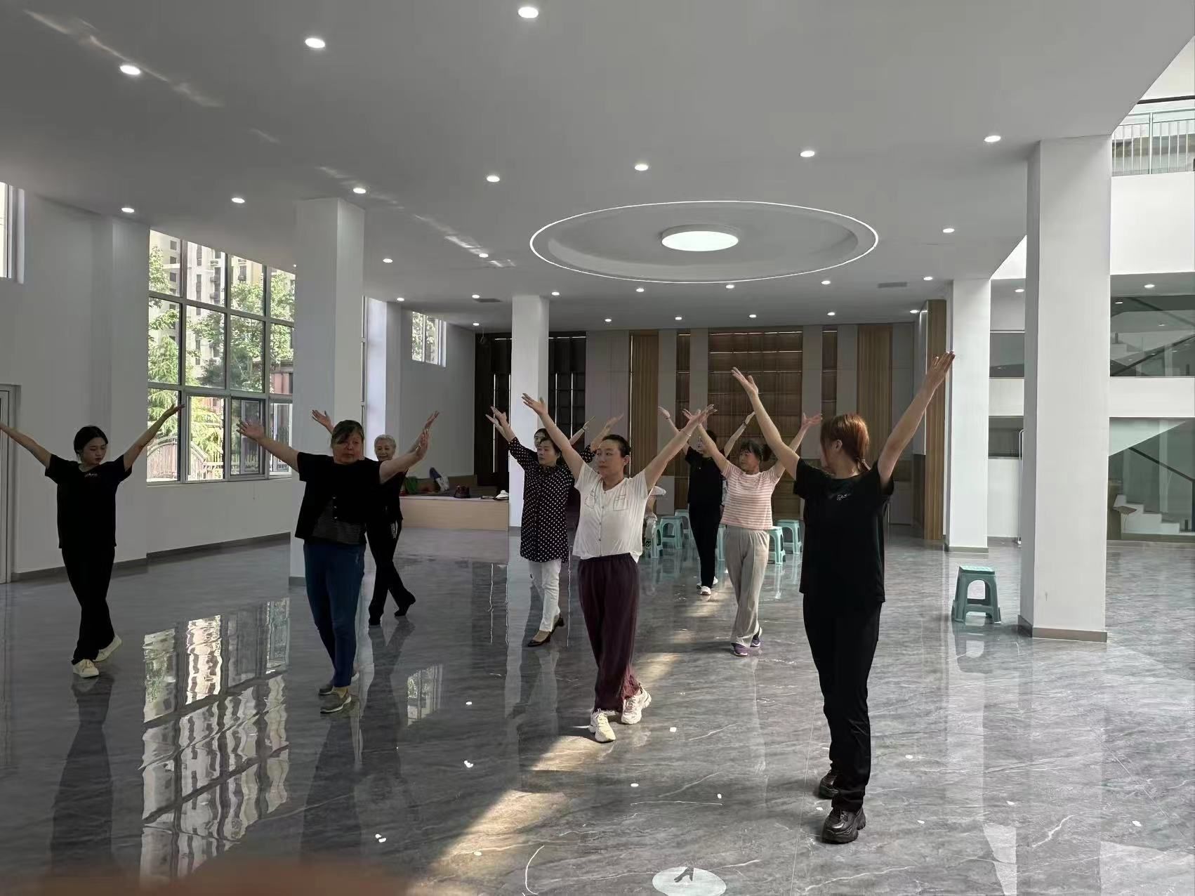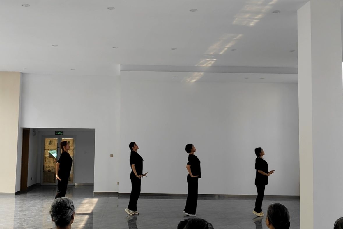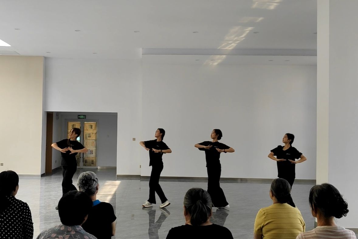 随后,志愿者们以《世界赠予我的》为教学剧目,带领社区阿姨们开展舞蹈互动教学。志愿者们将专业舞蹈动作进行简化改编,采用分解教学、示范引导等方式耐心指导。教学过程中,志愿者青春洋溢的示范与社区居民认真投入的跟学,构成了一幅和谐美好的社区文化图景。