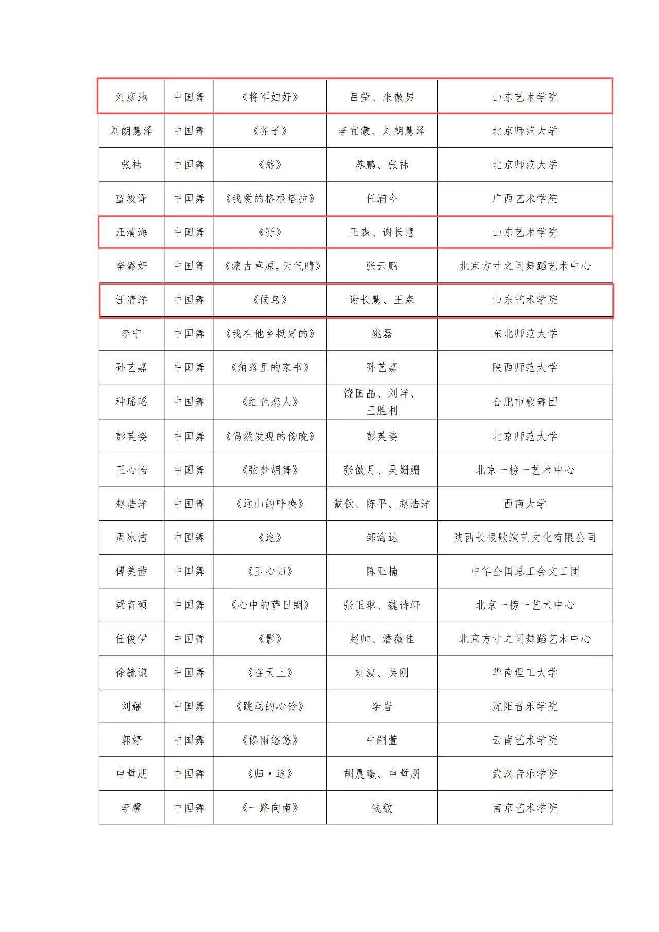 近日,由中国舞蹈家协会主办的“2024中国顶尖舞者成长计划”经中国舞蹈家协会组织编创指导组推选,现全国百强名单已经公布。beat365亚洲体育官方网站舞蹈表演专业2021级汪清海、汪清洋、2023级刘彦池三名同学成功入围全国百强,后续将参加全国百强集训。