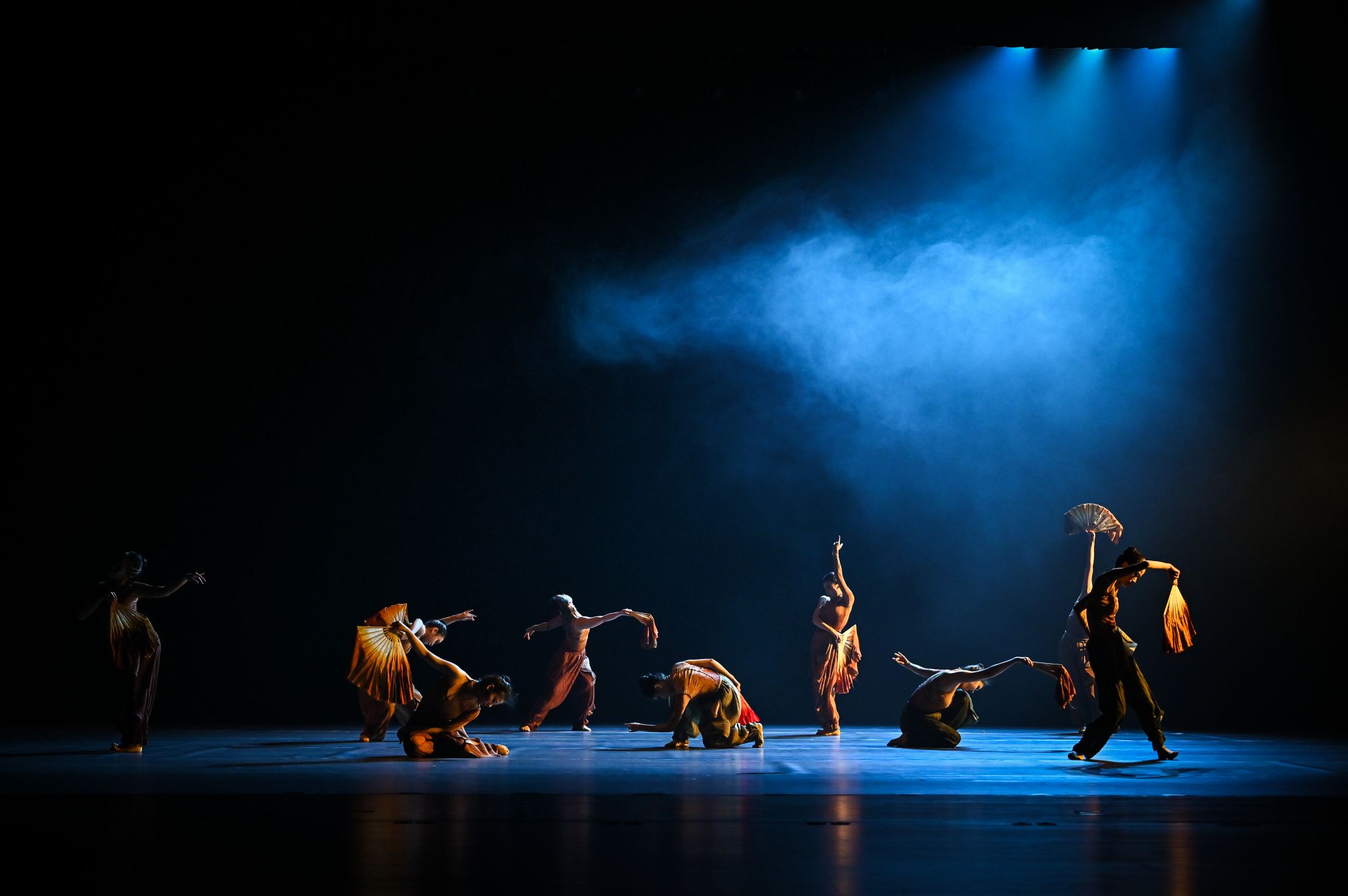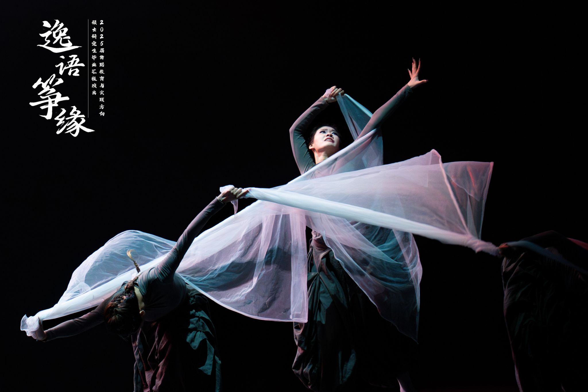 4月23日晚,《逸语·筝缘》——舞蹈科学训练与实践方向毕业汇演率先启幕。上半场“逸语·塑”:以中国古典舞身韵为核心,通过剑、扇、袖、翎等中华文化符号道具,融合“心、意、气、力、形、神”六要素,诠释“技法、身法、心法”合一的美学境界,展现古典舞的典雅气韵。