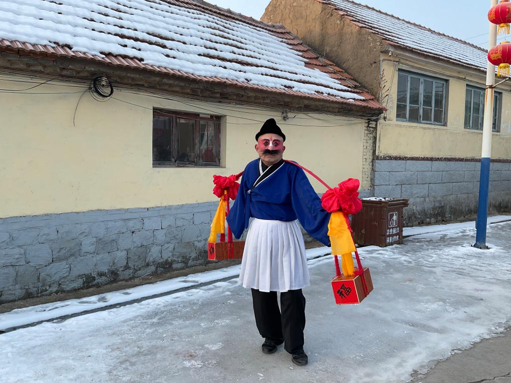 本次采风活动中,调研团队跟随环宇秧歌队进行走街串巷,走村串村,过程中除了完成对秧歌表演形态的记录任务外,还展开了对村貌环境、人物角色、服装道具、程式环节的记录与整理,为构建海阳秧歌线上数据库储备了丰厚的素材。