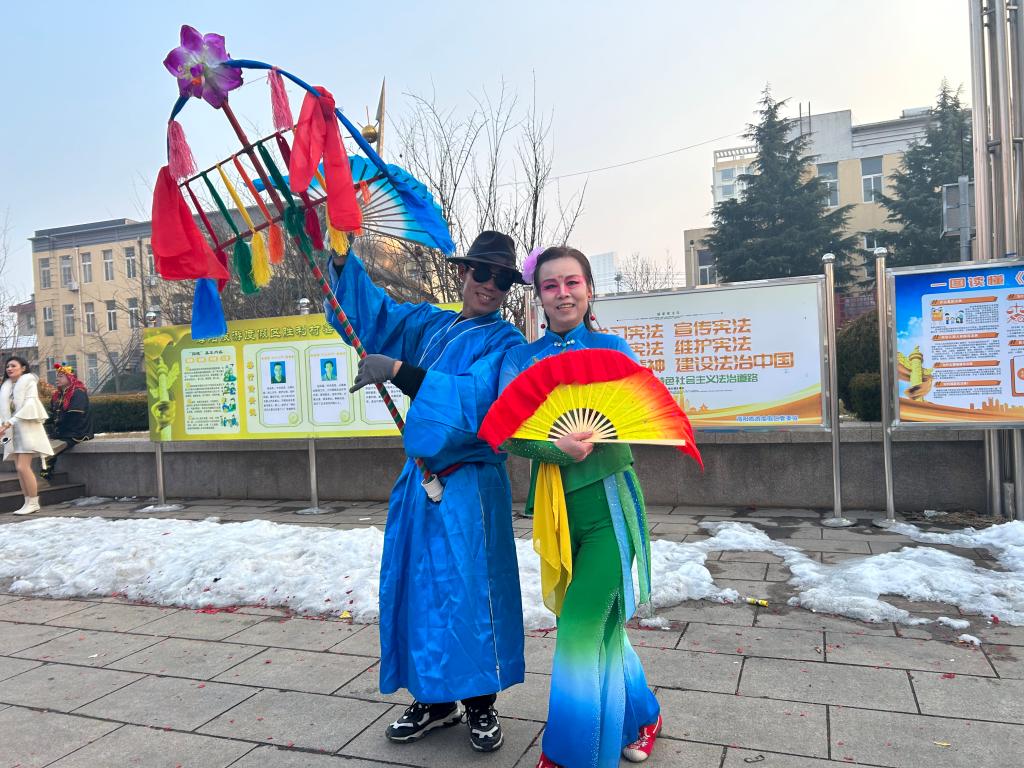 民间对年节的看重与期待是超出人的想象的,山东各地民众对这一重要节令的重视表现在了忙年的准备、仪式的程序和过节的兴致之中。海阳地区流传着这样一句俗语:“没有秧歌不叫年”意思是没有秧歌表演的年是不完整的。为探寻春节期间最为真实的海阳秧歌表演,2024年2月10日、11日(农历大年初一、初二),课题负责人李丽娜和2022级研究生李笑雨、2023级研究生王敏、2019级舞蹈学班杜迈四人组成调研团队,开启为期两天的采风调研之旅。
