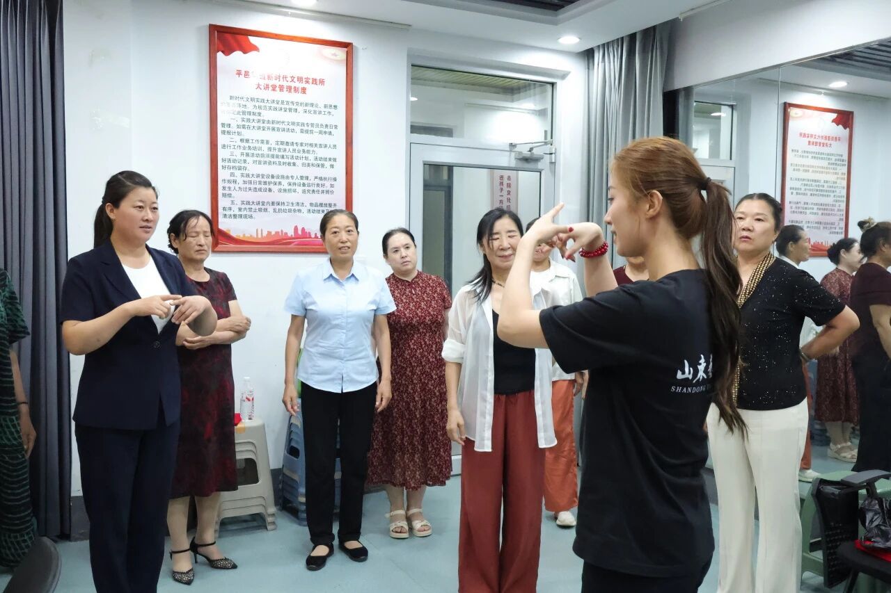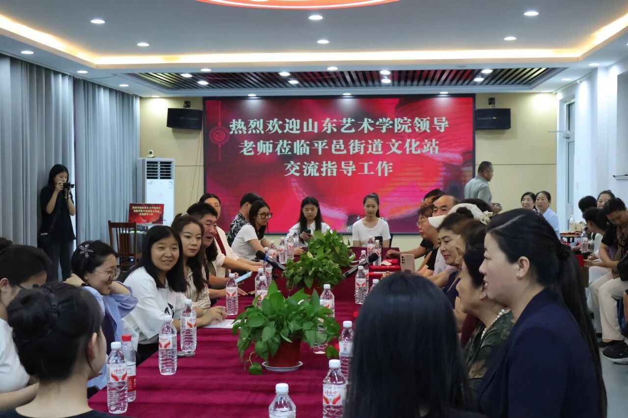 之后,服务团在平邑街道综合文化站与当地文艺爱好者座谈。志愿者观看《陈毅担架队》等 “群众演、群众办” 的原创小戏小剧,深化对 “以人为本” 创作视角的理解。交流中,志愿者解答舞蹈相关疑问、教学舞蹈片段,并与爱好者共同展示成果,实现双向学习,践行了文艺领域 “从群众中来,到群众中去” 的理念。