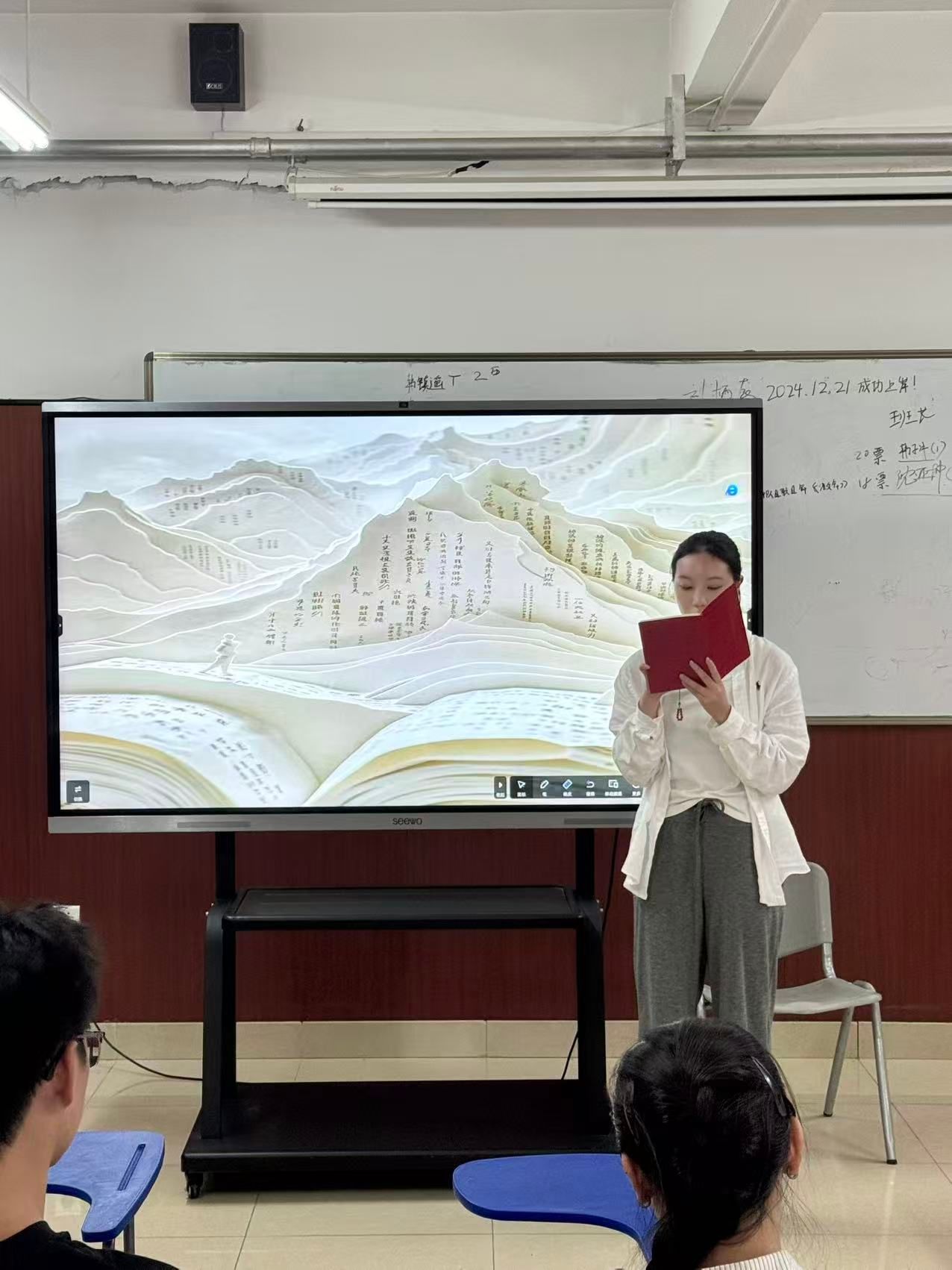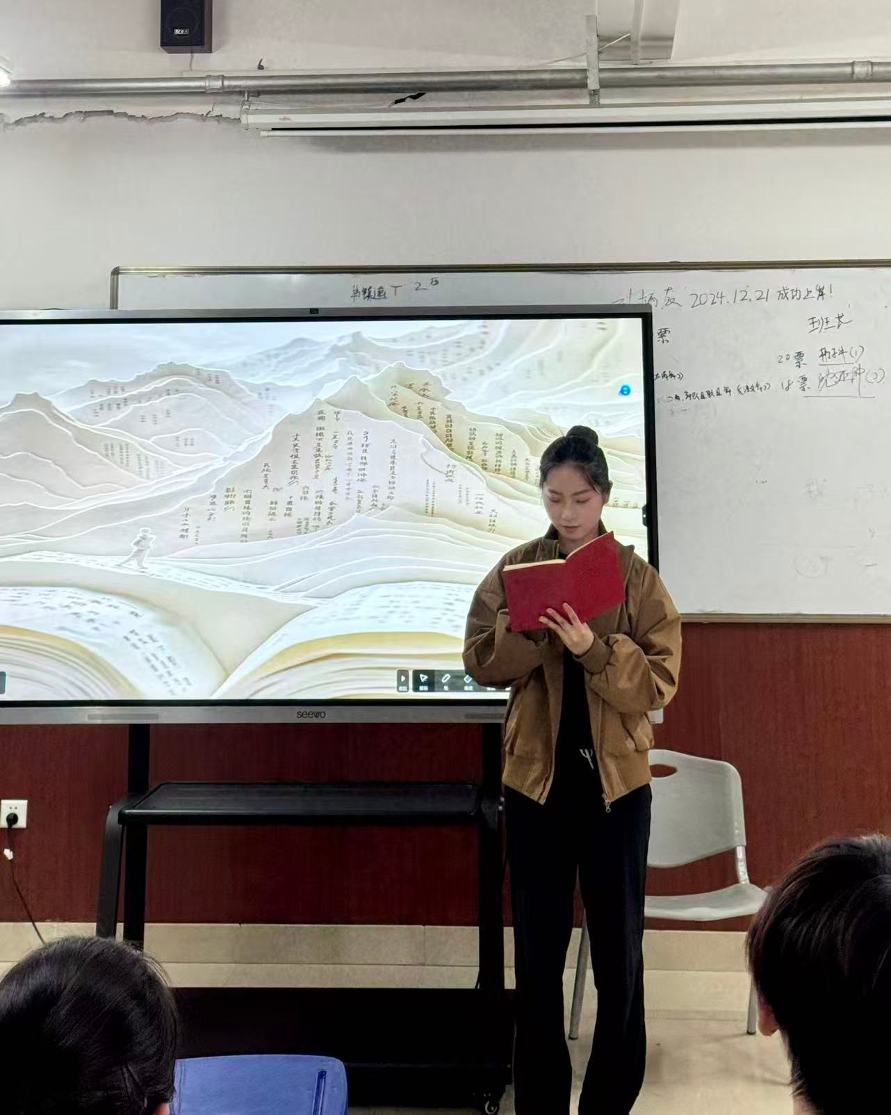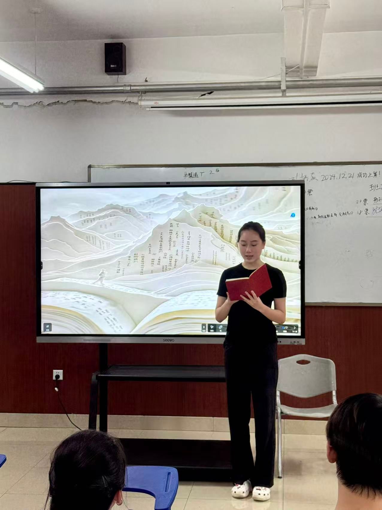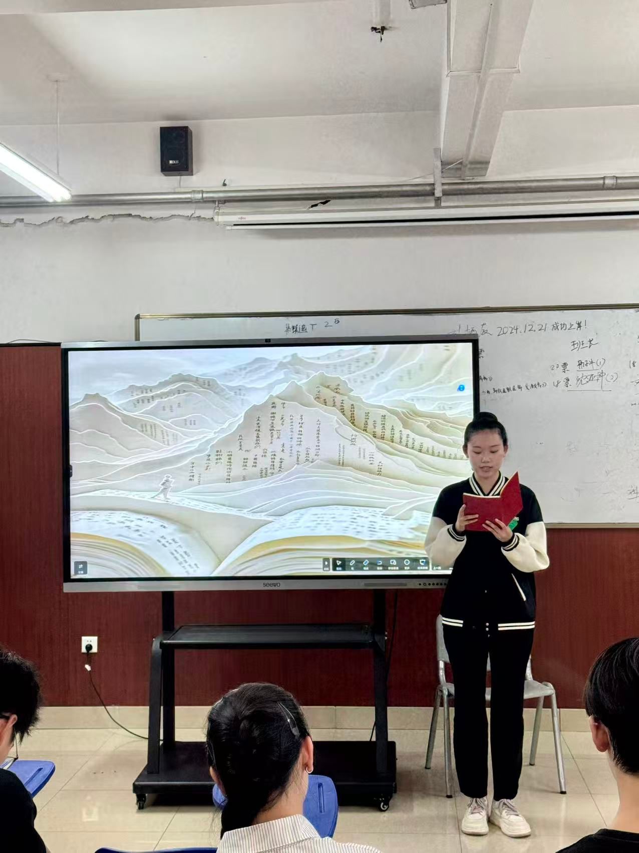 本次活动由吴笛同学主持。她以张桂梅老师“一盏明灯”般的感人事迹为引,深情讲述了华坪女高的故事,引发了同学们的深刻思考与讨论。随后,多位同学结合经典教育理念与榜样事迹,分享对教育家精神的理解与感悟。
