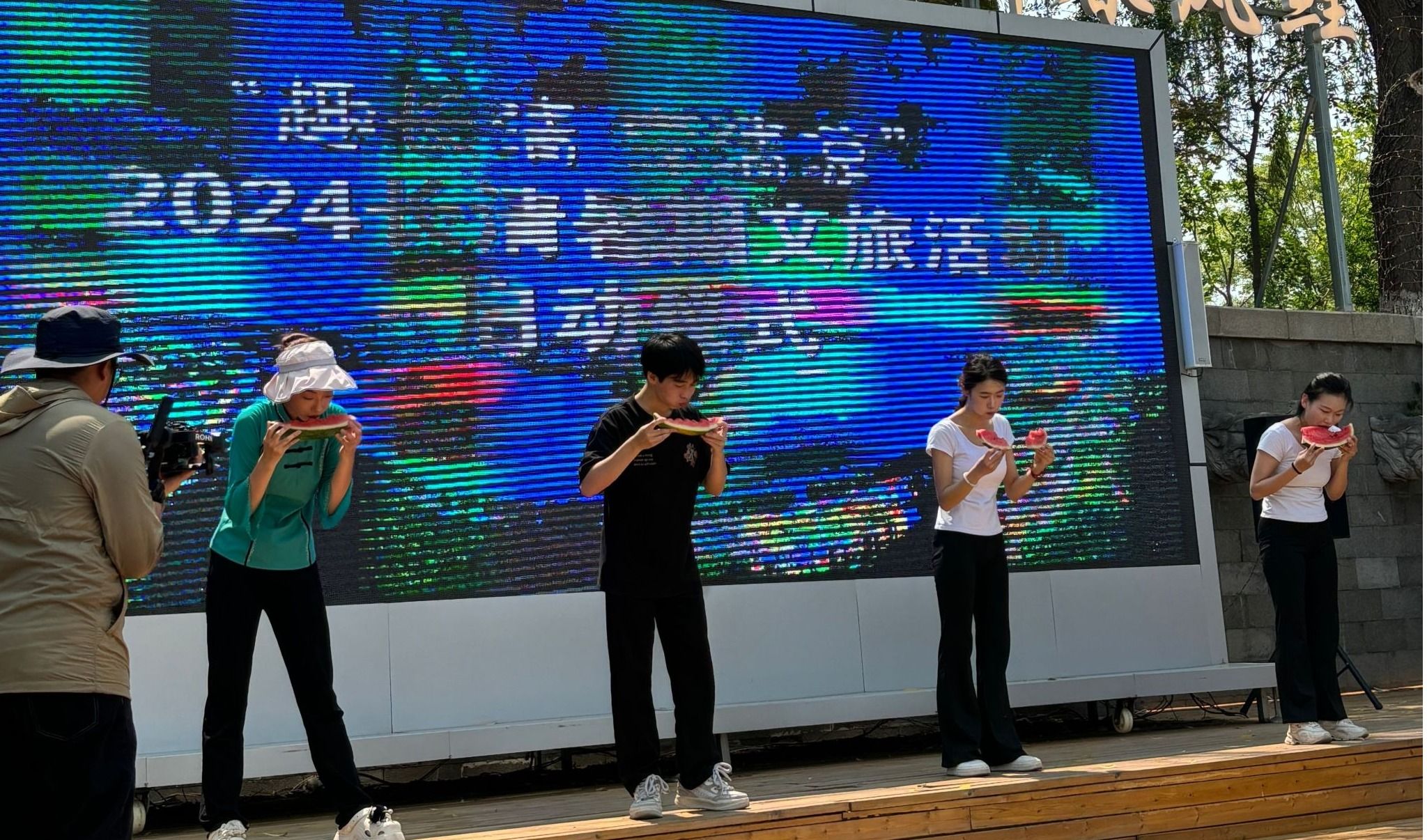 启动仪式落幕后,一场热闹非凡的吃西瓜大赛拉开帷幕,选手们都迅速捧起西瓜,甘甜的滋味在同学们的口中蔓延,现场观众们的加油声、笑声交织在一起,既为选手们的精彩表现鼓掌叫好,也被选手们滑稽可爱的吃相逗得前仰后合,现场气氛热烈。最后,老员工体验官及参会人员纷纷投身园博园的怀抱,乘游船、享水冲浪,亲身体验长清暑期文旅活动的独特魅力。