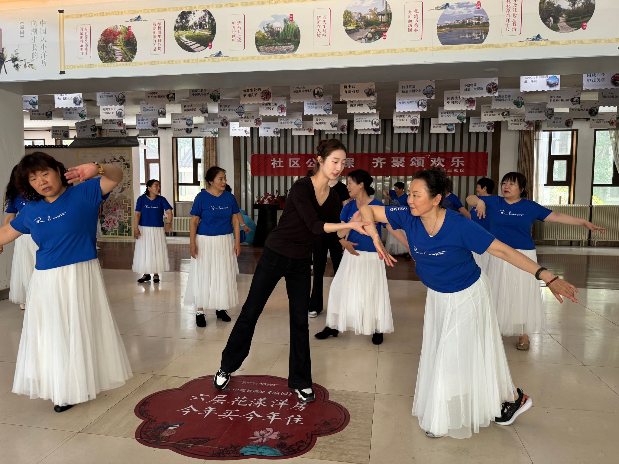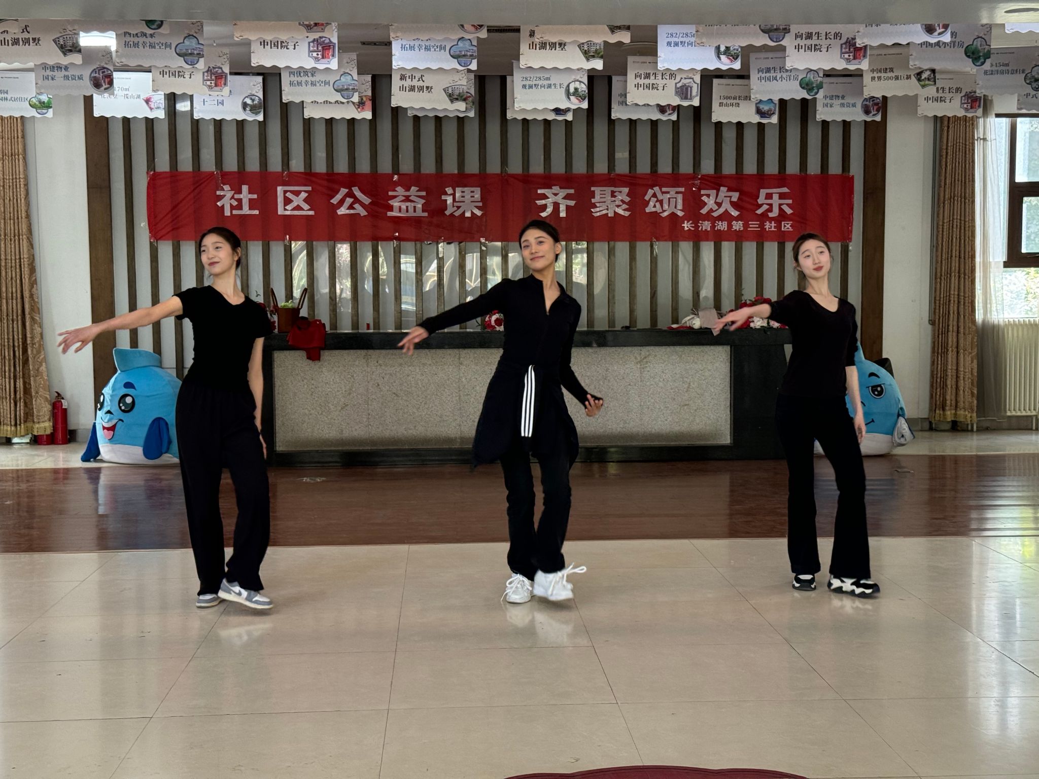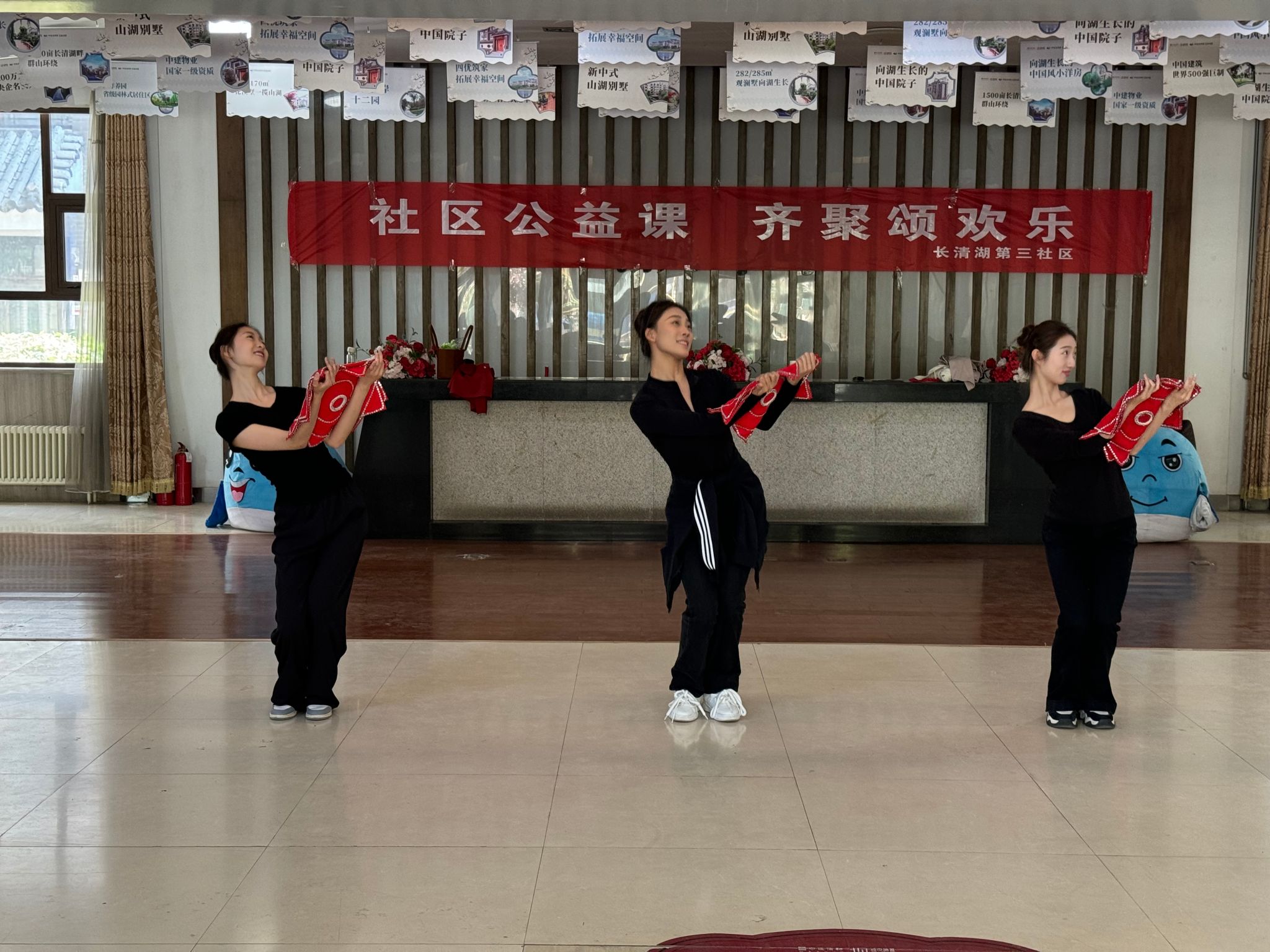 活动伊始,志愿者们为妈妈们带来了《藏族颤动律》和《东北动律》两个精彩的节目。随后志愿者们和妈妈们一起学习了舞蹈《酒醉的蝴蝶》,耐心细致的给妈妈们指导了舞蹈动作,活动现场氛围热烈而欢快,志愿者们和社区的妈妈们共同度过了一段充满欢乐的难忘时光。